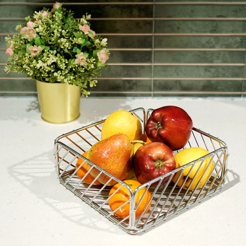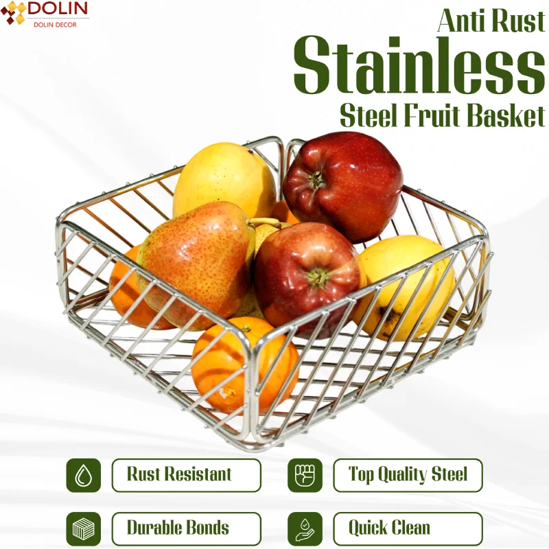 Dolin Decor Square Fruit Basket by Dolin Decor offers the perfect blend of elegance, durability, and functionality, making it an essential addition to any kitchen or dining table. Crafted from high-quality stainless steel, this basket features a sleek silver finish that complements both modern and classic décor styles.